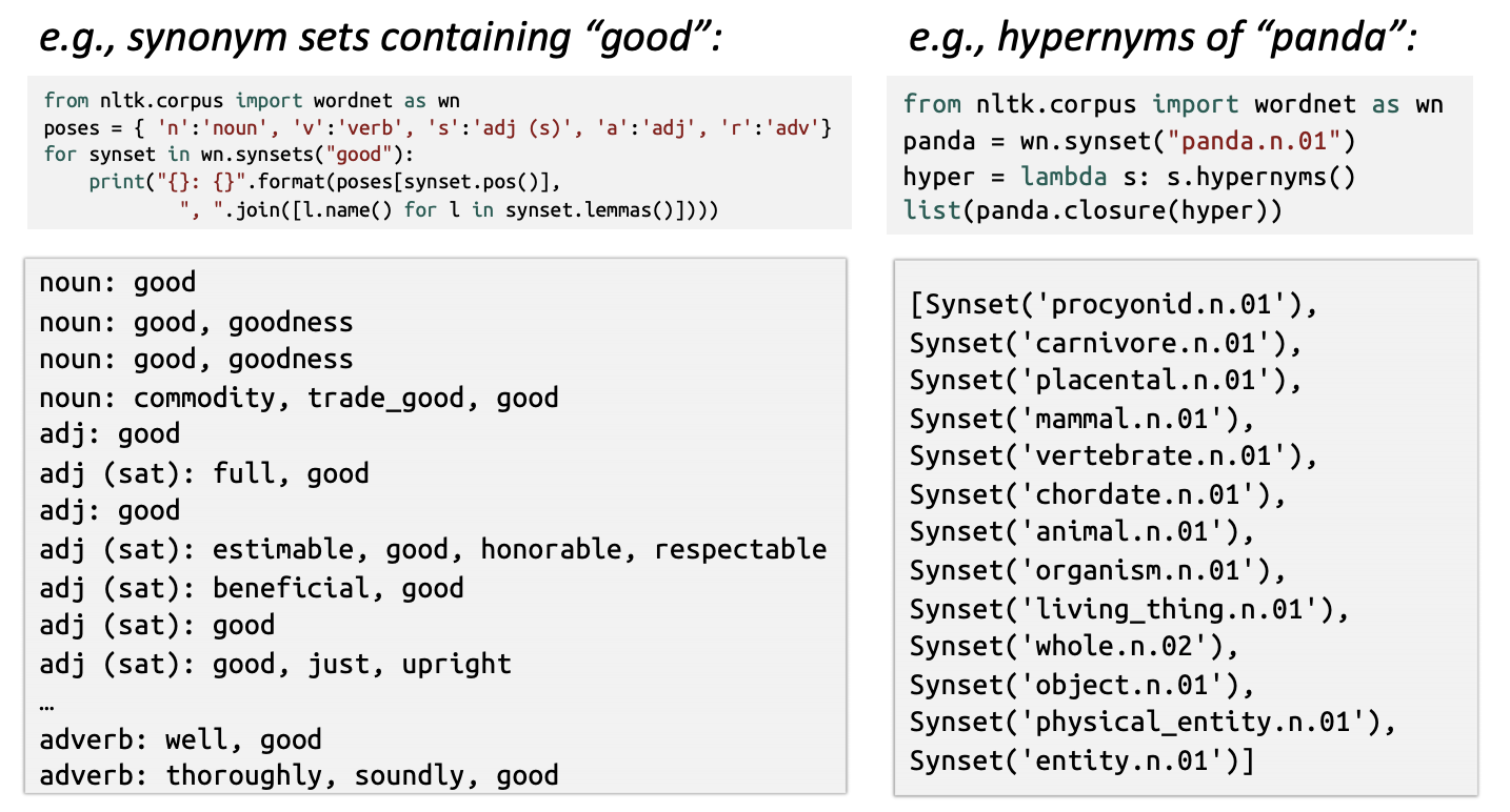 우리는 Wordnet의 동의어 리스트를 가져다 쓸 수 있겠지만, Wordnet은 너무 불완전 해. (-)