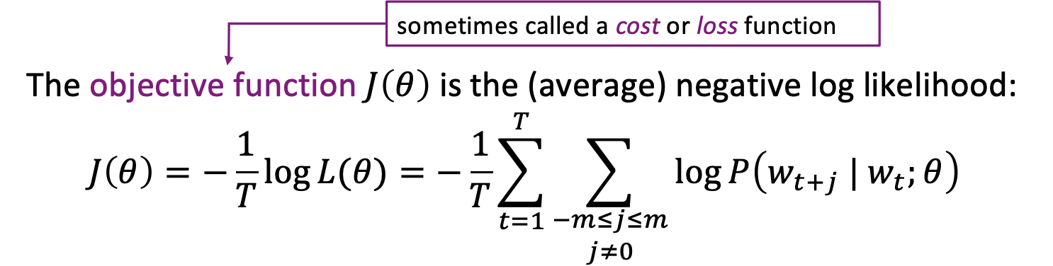 • Keep adjusting the word vectors to maximize this probability